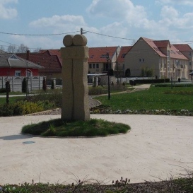 "Az Eppingen téren 2008. szeptember 6-án került felavatásra Vanyúr István szigetvári szobrászművész „Testvérvárosok emlékműve Szigetvár 2008” alkotása. A homokkőből készült szimbolikus alkotás Szigetvár és Eppingen városok baráti kapcsolatát kívánja kifejezni. Egy tömbből készült, két egymást átölelő alakot ábrázol, leegyszerűsített formában a megalít kor emlékeit idéző stílusban. Az emlékmű stílusához, anyagához, méretéhez méltó környezetben található, a hozzá vezető utakkal és a nagyszerű, diszkrét megvilágítással. A műalkotás - szintén Vanyúr István szobrászművész által készített - „párja” a németországi Eppingen városban a Szigetvár téren került felállításra." http://szigetvar.utisugo.hu/latnivalok/testvervarosok-emlekmuve-szigetvar-88544.html 2010.04.09. 18:44