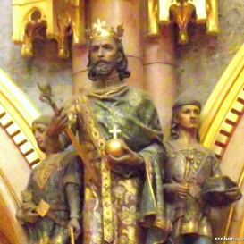 A kupolacsarnokban elhelyezett tizenhat uralkodó szobra közül a középpontban Árpád vezér és két apródjának szobra áll. Őt követi István, ... majd II. Endre, őt pedig fia, IV. Béla - ugyancsak két apródjával. 2011.04.11. 21:32