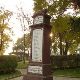 Az emlékmű elején fehér márvány táblán huszonkét I. világháborús hősi halott nevét olvashatjuk: