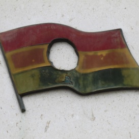 Fehér mészkő táblán mozaikból kirakott lyukas zászló. 2008.08.05. 14:46