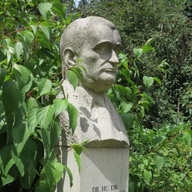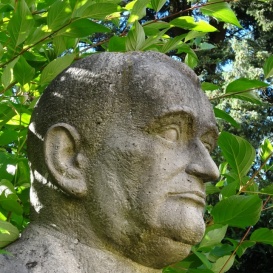 Kőből faragott mellszobor, mellette egy kőpad. A természet már igyekszik magáévá tenni az alkotást. A posztamens felirata: