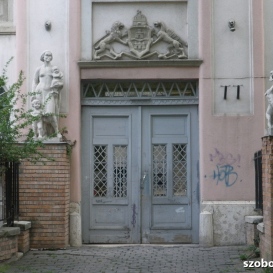 Az itt elhelyezett két szobor elhelyezésének körülményeire vonatkozóan a forrásnál jelöl könyv nem szolgáltat részleteket. Meglepett az alkotás felállításának évszáma, mivel az épületdíszítő alkotások többnyire a ház elkészültével egy-időben készülnek.