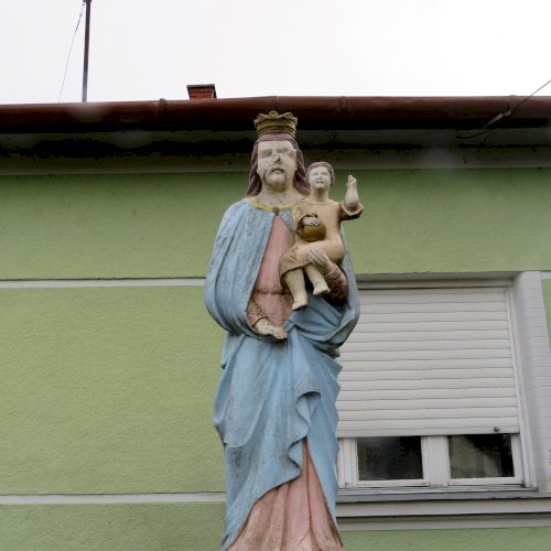 A szobrot többször átfestették, a készítő jelzése így nem látható.