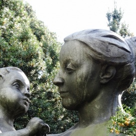 Ez az egymás felé fordulás, az elszakíthatatlan összetartozás és a szeretetteljes mosoly örök téma a képzőművészetben.