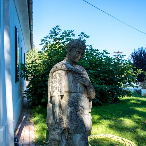 Az udvarán található szobrokat, kővázákat a művész a teleülésről és környékéről gyűjtötte össze.[2]
