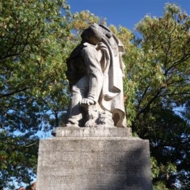 Az emlékmű előtt Lukács Dénes tüzér ezredes dicsőségét hirdeti egy márványtábla.
