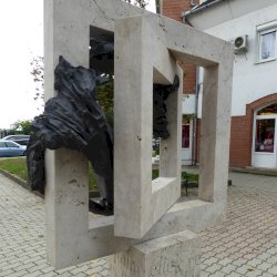 Kár érte, mert az emlékmű felső része figyelemre méltóan újszerű. Végre egy nem megszokott mellszobor vagy dombormű, ami az írónak állít emléket.