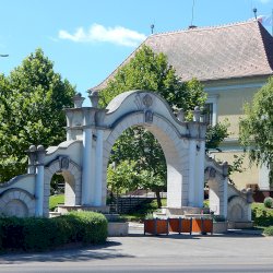 A városba látogatót három férfi fogadja, a távozókat három nő búcsúztatja.