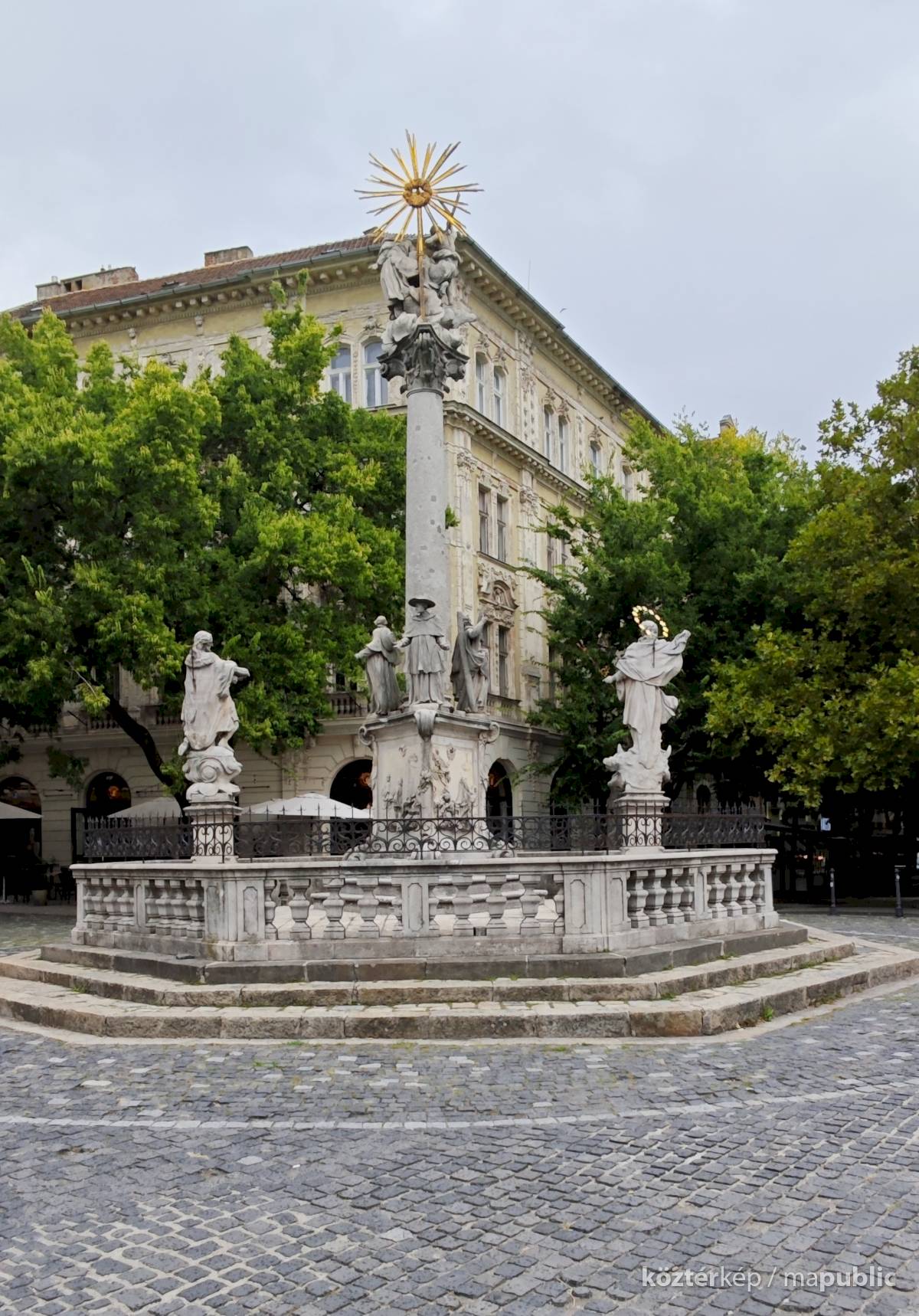 A talapzaton lévő szobrok és a reliefek 1760 körül készültek, a külön oszlopon elhelyezett Szent István és Szűz Mária 1780 táján.