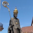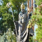 Szent Gellért Plébániatemplom főbejárata előtti kicsiny parkban van felállítva.