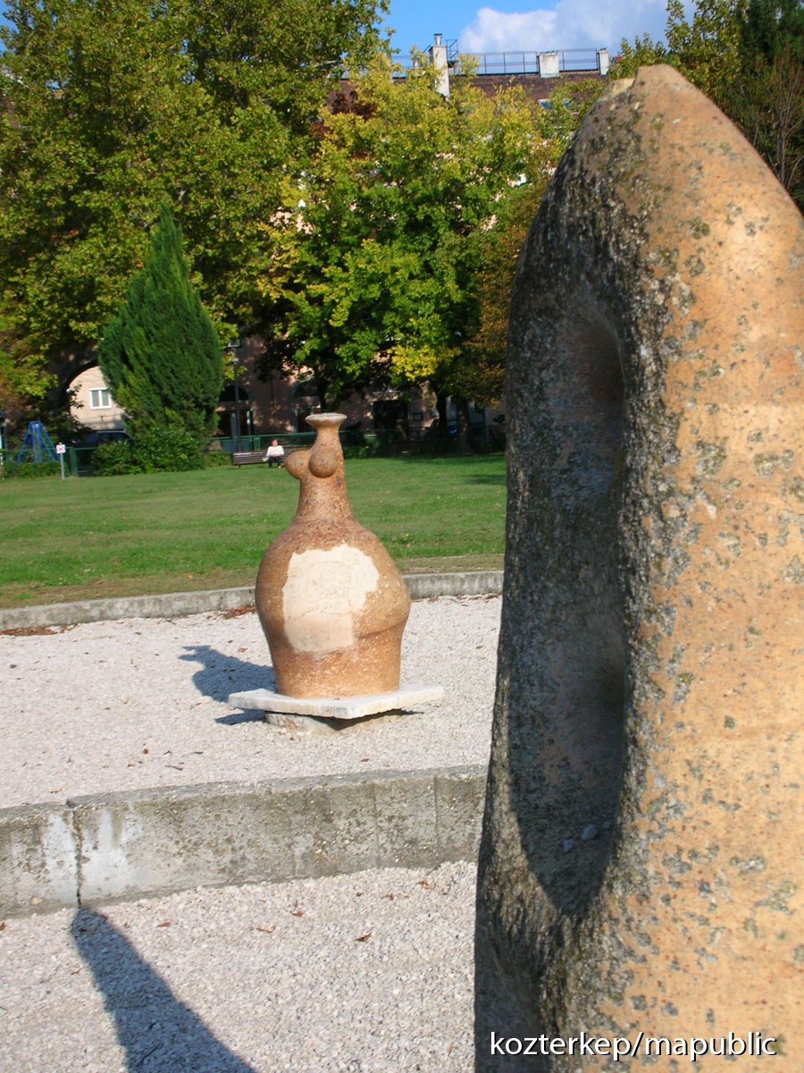 A kerámia alkotások két nagy köralakú vízmedence közepén állnak. Ma már sajnos nem működnek, így a vízmedencében víz helyett murvát találunk.