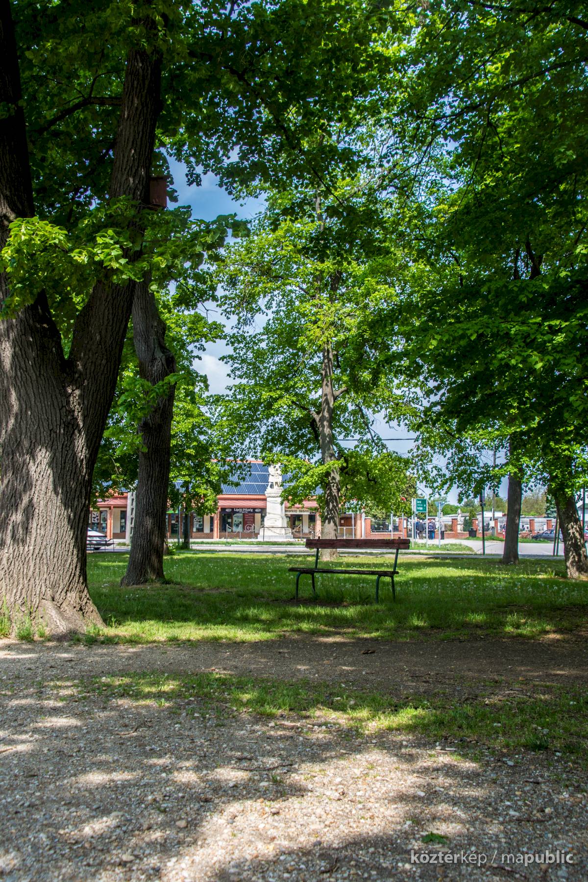 „Az emlékmű első felállításra nem a mai helyén, hanem, az un. Hősök kertjében került sor, az országzászló szomszédságában. (a mai Liget utca közelében) Innen „költöztették” a Muzsikaház közelébe.[2]