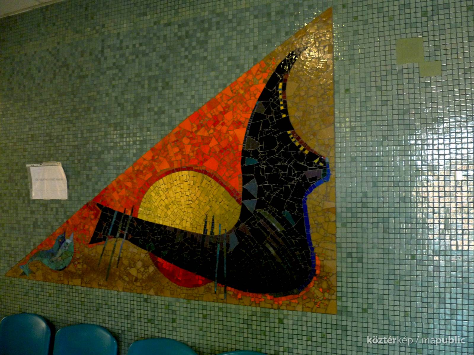 Miklósi Mária Delfin mozaikképe a lépcsőház harmadik emeletének előterét díszíti.