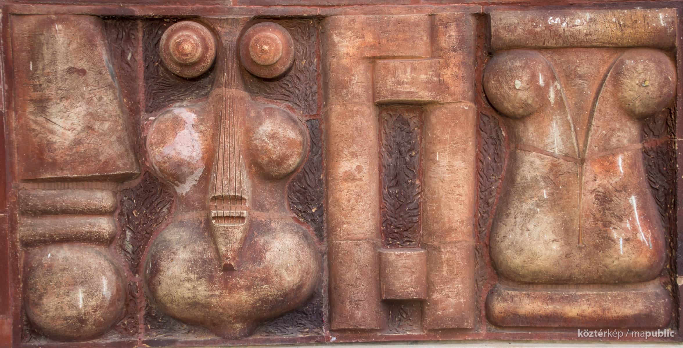 - Amikor a Vas megyei tanács felkért, hogy készítsek egy térkompozíciót, először is a helyszínt tanulmányoztam. A tér egyik jellemzője, a geometrikus vonalak, a függőlegesek és a vízszinteseik statikus játéka. A faliképnek tehát 'először ehhez kell alkalmazkodnia Égért is választottam a tér ablakaihoz hasonló térmegosztást. A másik jelentős szempont a tér kékes-szürke hangulatának feloldása. Erre kitűnően alkalmas a kerámia sziennás-sárga színvilága. A kompozíció felső sorában az ősi Savaria hangulatát igyekeztem felidézni, ötvözve a mai kor emberének élményvilágával. A felső két kockában az Égi szekér, Zeusz szekere jelenik meg a Nap-koronggal, mint minden élet forrásával. A Nap-motívum itt egyben az örök körforgást az életet, az emberközpontúságot szimbolizálja. Az alsó sorban a néprajz, az építészet, a zene és a képzőművészet jelképes kapcsolatát próbáltam a kerámia sajátos nyelvezetével megjeleníteni. " [1]