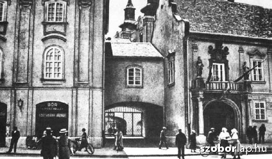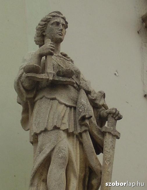 Ez a szobor - ha szemben állunk az épülettel - az erkély bal oldalán található.