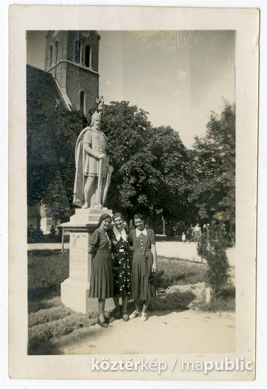 Az alkotás még az eredeti helyén (kb. 50 méterre a mostani helyétől) a szervita rendház előtt. Forrás: http://krasznailajos.hu/v/budapesti_alkotasok/mariaremet/laszlo.jpg.html