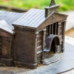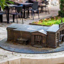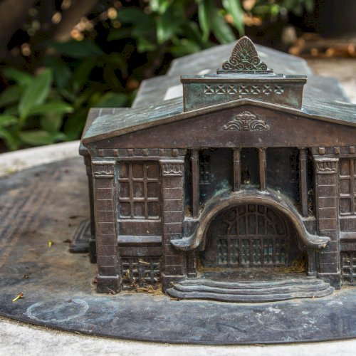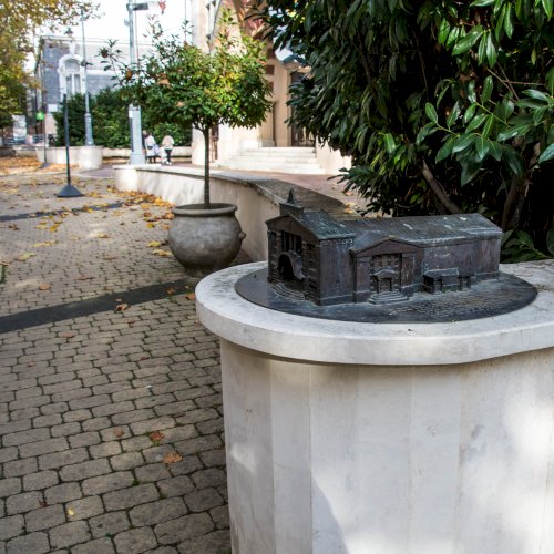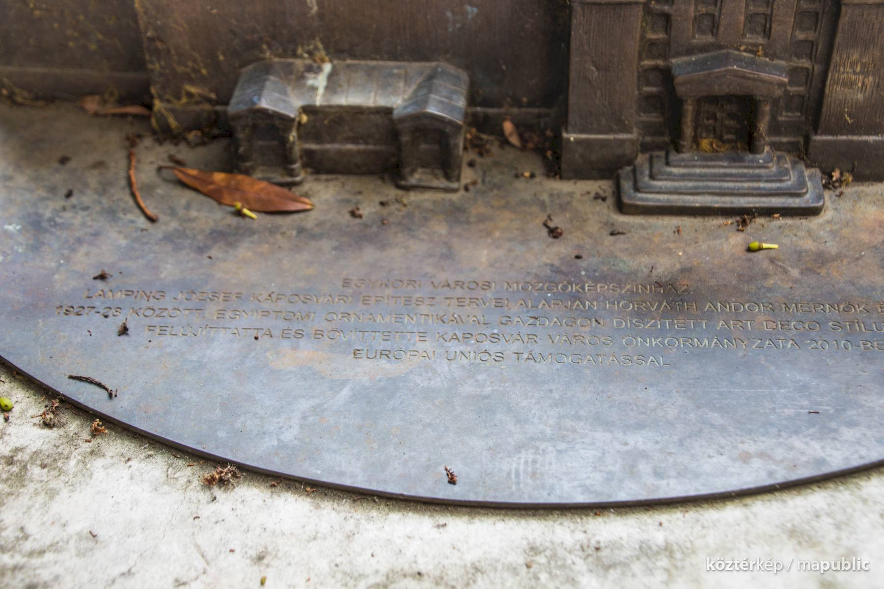 A mozi mellett álló, az épületről készített kicsinyített 1:75 léptékű bronz másolat nem csak a mozi tervezőjének Lamping Józsefnek állít emléket, hanem vakok és látássérültek számára lehetőséget nyújt tapintással megismerkedni az épület formájával. Az alkotást Horváth Balázs fiatal kaposvári szobrászművész készítette.