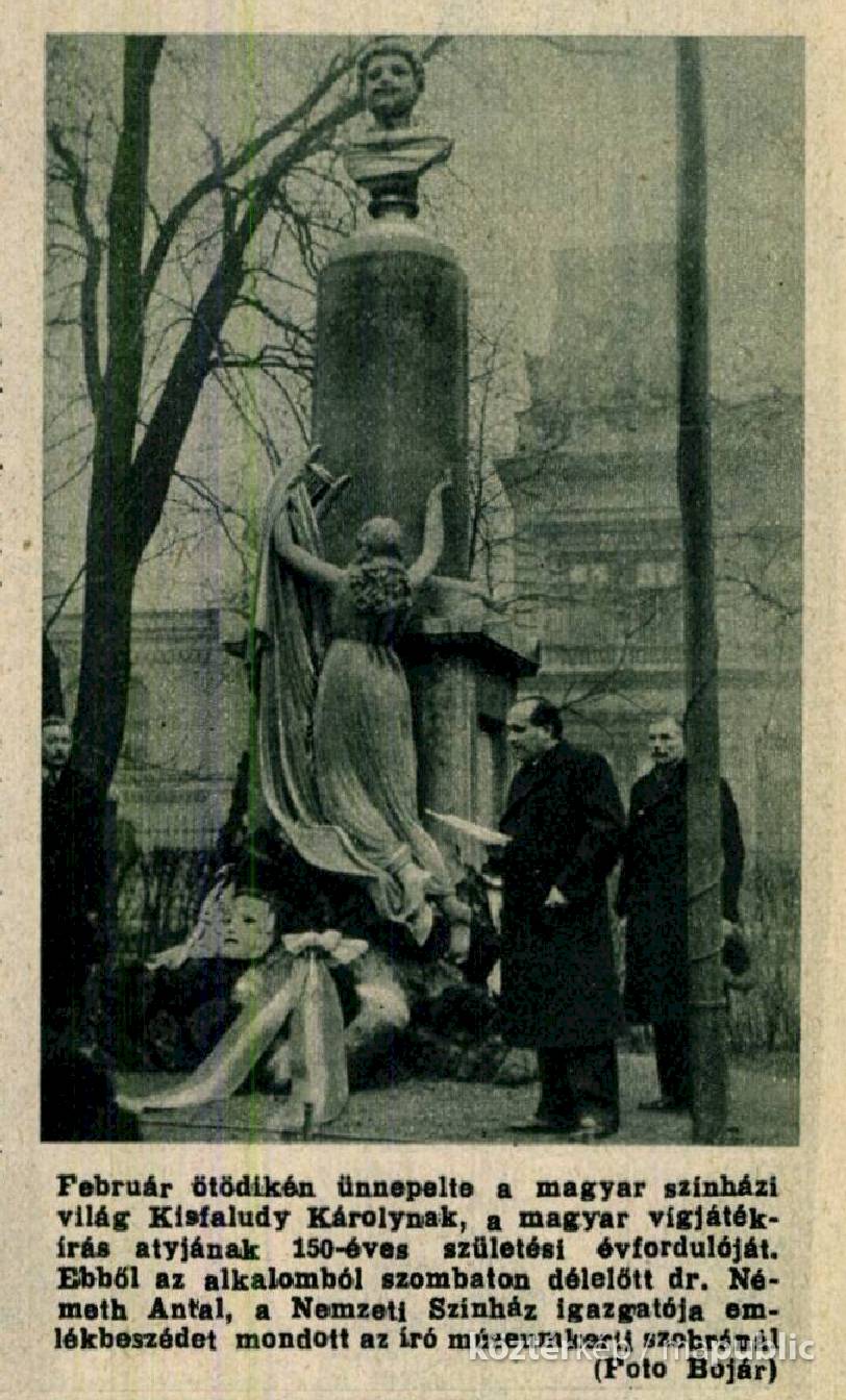 Február 1. A Kisfaludy Társaság emlékünnepén hivatalosan is bemutatják a szobrot. A Nemzeti Színházban tartott program végén a Hunyady László opera 'Hattyúdal' című betétdalának elhangzásakor a színpad hátterében feltűnik Kisfaludy Károly szobra.