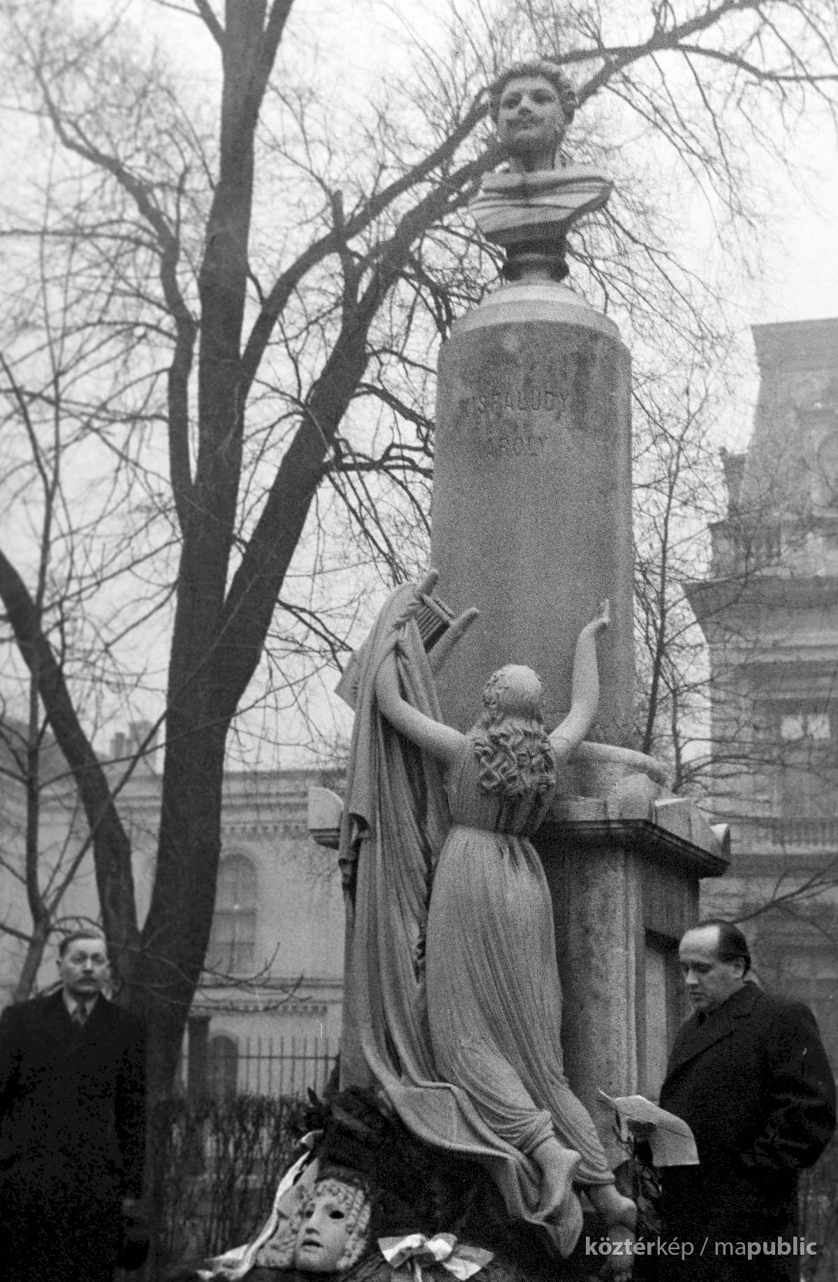 Február 6. Engedélyezik az emlékmű felállítását, de a Nemzeti Múzeum raktárában már csak Kisfaludy mellszobra és a múzsa van meg; a többi vagy elveszett, vagy eleve a felállításkor kellett volna legyártatni. A hiányzó részek elkészítésével Gerenday Antal kőfaragómestert bízzák meg, aki olyan magas összeget kér a munka elvégzéséért, hogy kifizetésére a Kisfaludy Társaságnak nincs elegendő pénze, még a Ferenczynek szánt munkadíjat is elköltötték másra.
