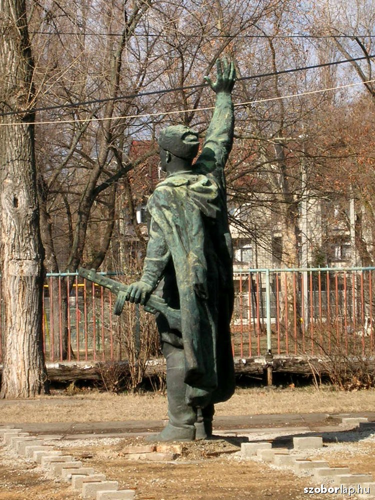 A szobrot eredetileg a közelben lévő szovjet katonai temetőben állították fel Szovjet hősi emlékműként. A rendszerváltás után a temetőt felszámolták, az emlékművet lebontották. Mint megtudtam, a lebontás után került ide, a Csepel Sport Club futballstadionja vendéglátó-egységének a kertjébe. Hosszú évekig jóformán láthatatlan volt, mert az étterem kerthelyiségének tetőrendszerébe építették bele. ("Archív kép") Az étterem bezárt, a tetőt lebontották és előkerült Aljosa. A gépfegyveres szovjet vöröskatona integető 270 cm magas bronz alakját Gyenes Tamás szobrászművész készítette. A katona mai környezete nagyon mulatságos, ahogyan a háta mögötti falra festett Hawaii tengerparti jelenet előtt áll és integet.