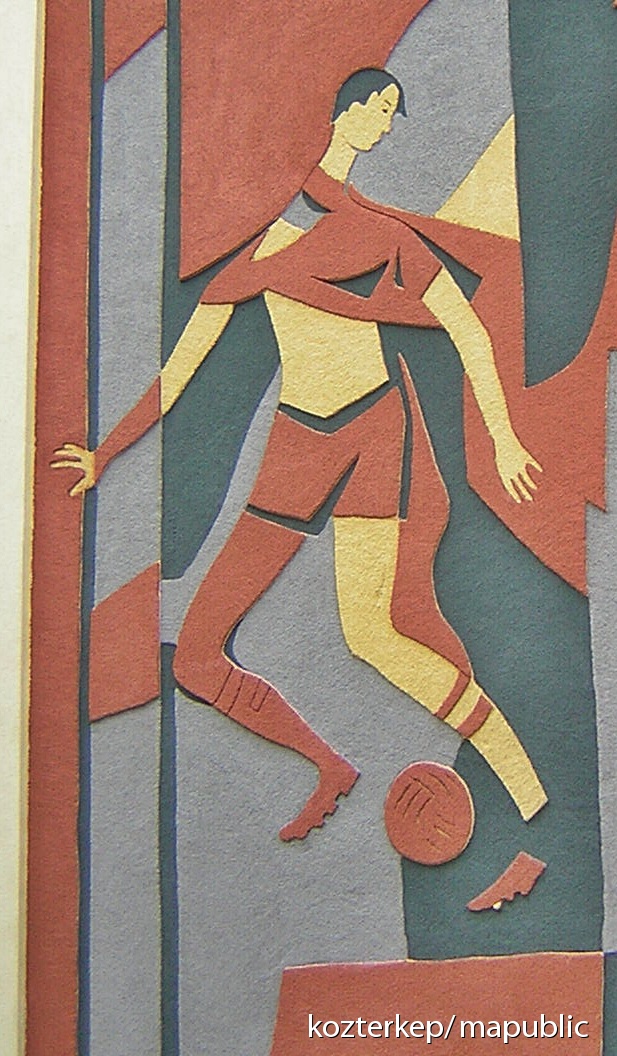 A híres oroszlányi 9 sgraffito helyszínétől elkülönülő 10. sportcsarnoki kép is megújult mint a Rákóczi Ferenc úti társai.