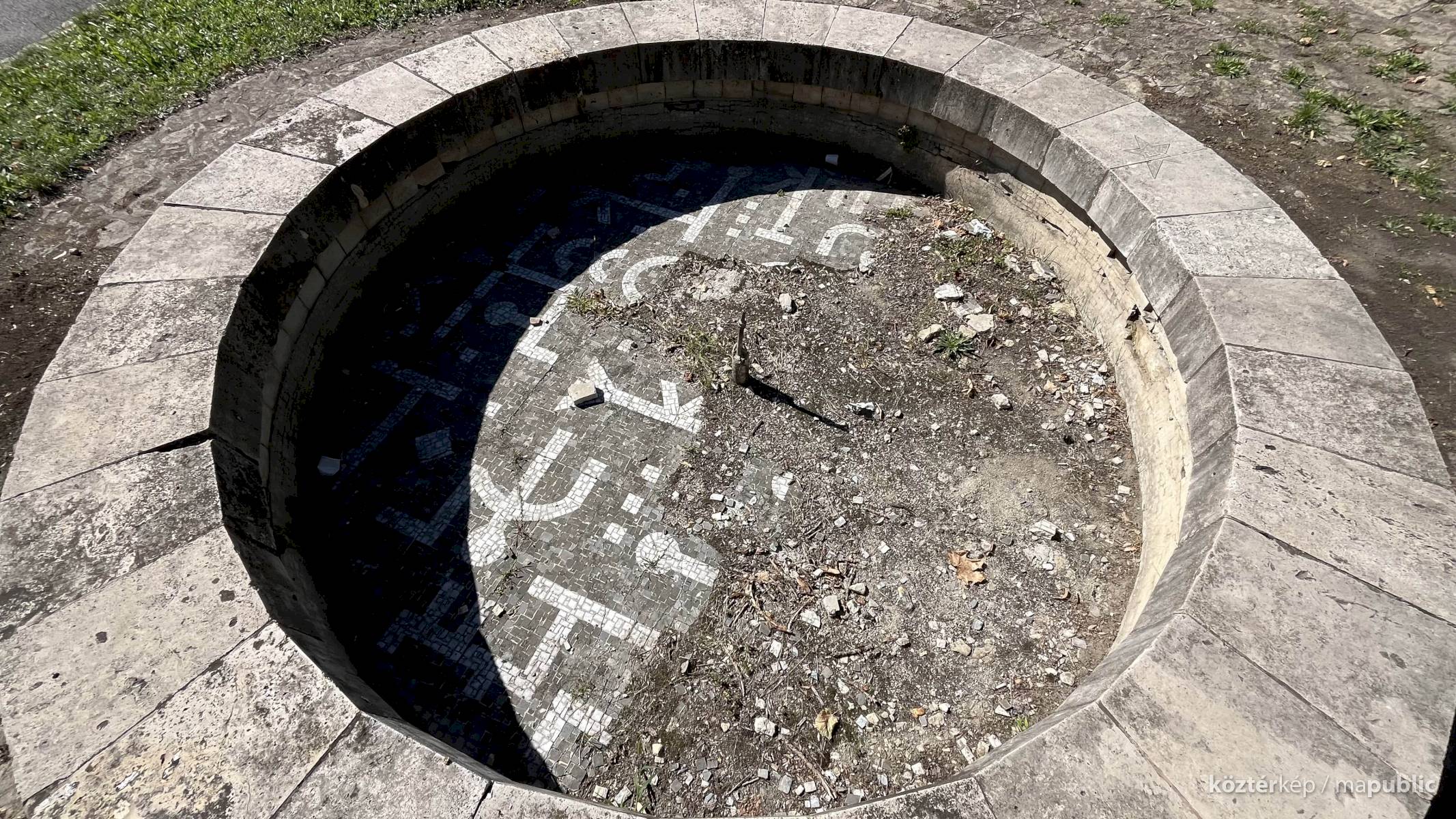 A kis cikk óta eltelt évtizedekben a kút 210 cm átmérőjű kör alakú modern mozaik kompozíciója elkezdett feltöredezni, és mára egy nagyobb rész hiányzik belőle. Sajnos koszos elhanyagolt most a kút és környéke. Pedig nemrég újították fel a Rácz-fürdőt, talán ennek a rendbehozatala is belefért volna, mert lassan nem lesz már mit megmenteni!!