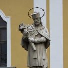 A római katolikus templom kertjében álló szobor klasszicista stílusban készült, 1820 körül. Nepomuki Szent János a hidak szentje, s a gyónási titok vértanúja. Legendája szerint IV. Vencel király felesége őt választotta gyóntatójául. A király meg akarta tudni, mit gyónt a felesége, mivel azonban János nem volt hajlandó megmondani, 1383-ban megkínoztatta és a Moldva folyóba dobatta.'