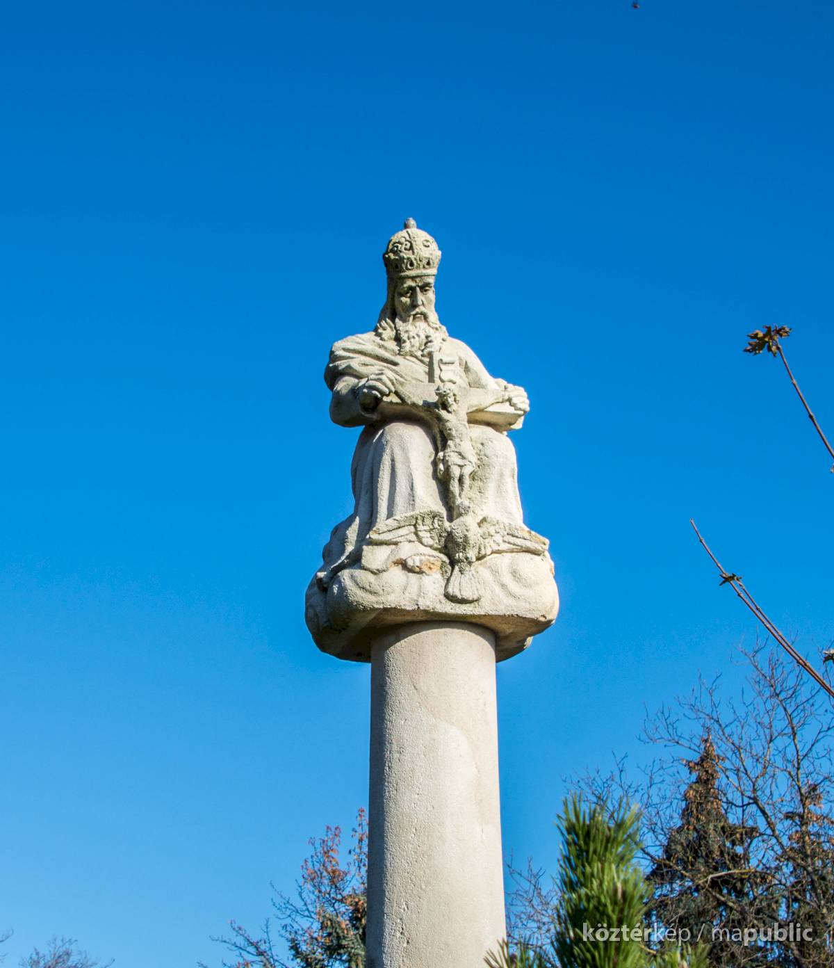A Szentháromság-oszlop leggyakoribb ábrázolása, hogy egy trónszéken ül az 'Atyaisten', ölében a keresztre feszített fiú, fölöttük a szentlélek galamb képében.
