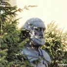 Négyszögletes, lépcsős talpazaton bronz mellszobor.