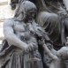 Baloldalt, a Béke négyalakos szoborcsoportjában, az angyal hozza az olajágat. Alatta a hazatérő apát üdvözli boldog családja. A két szélen dús szőlőfürtök, illetve búzakalászok idézik a béke áldásos hatását. A talapzatot méhkas, ásó és gereblye: a szorgalom, a földművelés és a termékenység szimbólumai ékesítik. '