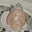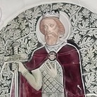 A domború elemeket is tartalmazó kép "síkjából" erőteljesen emelkedik ki a szent király "hermájára" utaló feje, arca, más koronával, jobbjában kétélű kardjával, korhű ruházatban. Szerepelnek a mondabeli sziklák, hegyek, erdők, forrás, a krónikák közölte rendházak, templomok. Feje fölött a Nap és a Hold jelképei.
