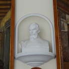 Azóta többször próbáltam arra szervezni utamat, de csak nemrégiben jutottam el a patikába nyitvatartási időben. Valóban ott van, nemes egyszerűséggel néz le ránk a bejárattal szemközti falon elhelyezett kis fülkéből. Természetesen engedélyt kaptam a fényképezésre úgy, hogy büszkén informáltak az alkotóról. Megköszöntem a megerősítést.