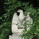 A kb. másfél méter magas posztamensen egy katona áll, fején rohamsisak, puskáján támaszkodik. Háta mögött egy oszlop, melynek tetején egy turul helyezkedik el.