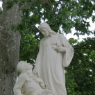 A mészkőből készült alkotás egy sebesült katonát és a saját sebére mutató Krisztust ábrázolja.