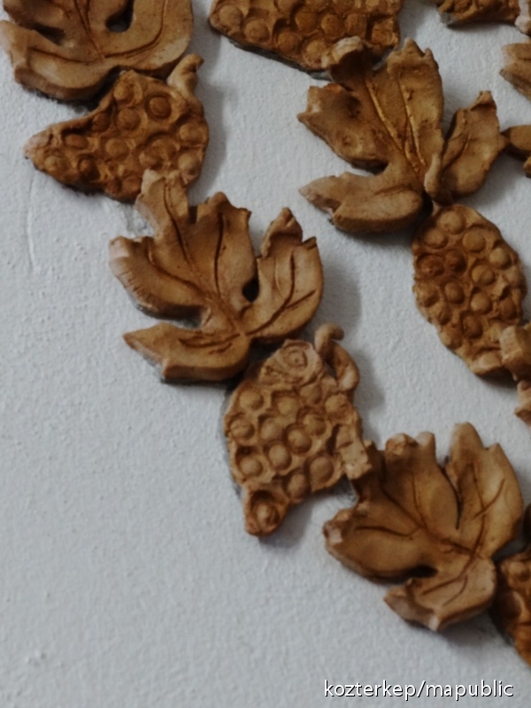 A bejárat melletti falon (a karzat felé nézve, bal oldalon) a Tavasz és a Nyár látható. "Két angyal kelyhet sejtető alakja,, melyek ostyaként tartják szárnyukon a körkörös formát képező apró virágokat (bal oldali félkörök – Tavasz) és búzakévéket (jobb oldali félkörök – Nyár)."