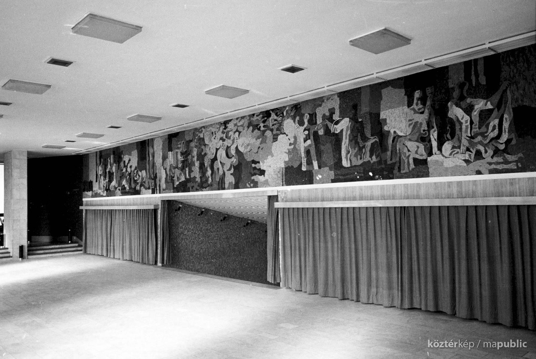 — Eredeti elképzelésem is az volt, s úgy alkottam a teret, hogy fő témája kifejezetten e festmény legyen, s ezt szolgálja az egész tér. S most vált azzá, amivé tulajdonképpen elképzeltem. A művésznő a színházi hangulathoz illő, meleg, intim atmoszférájú festményt alkotott, s ez a dinamikus motívumok lendületes és erőteljes színezésű formák által az egész teret kitölti hatásával. Büszke vagyok arra, hogy méltó munka társra leltem Túry Mária festőművészben — mondotta Tillai Ernő.