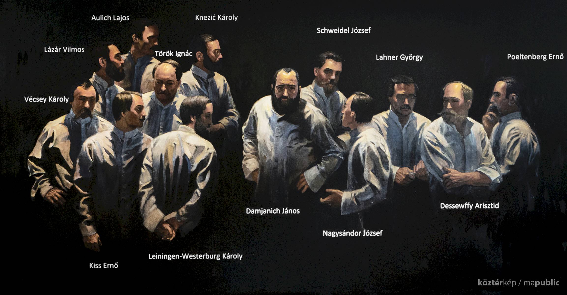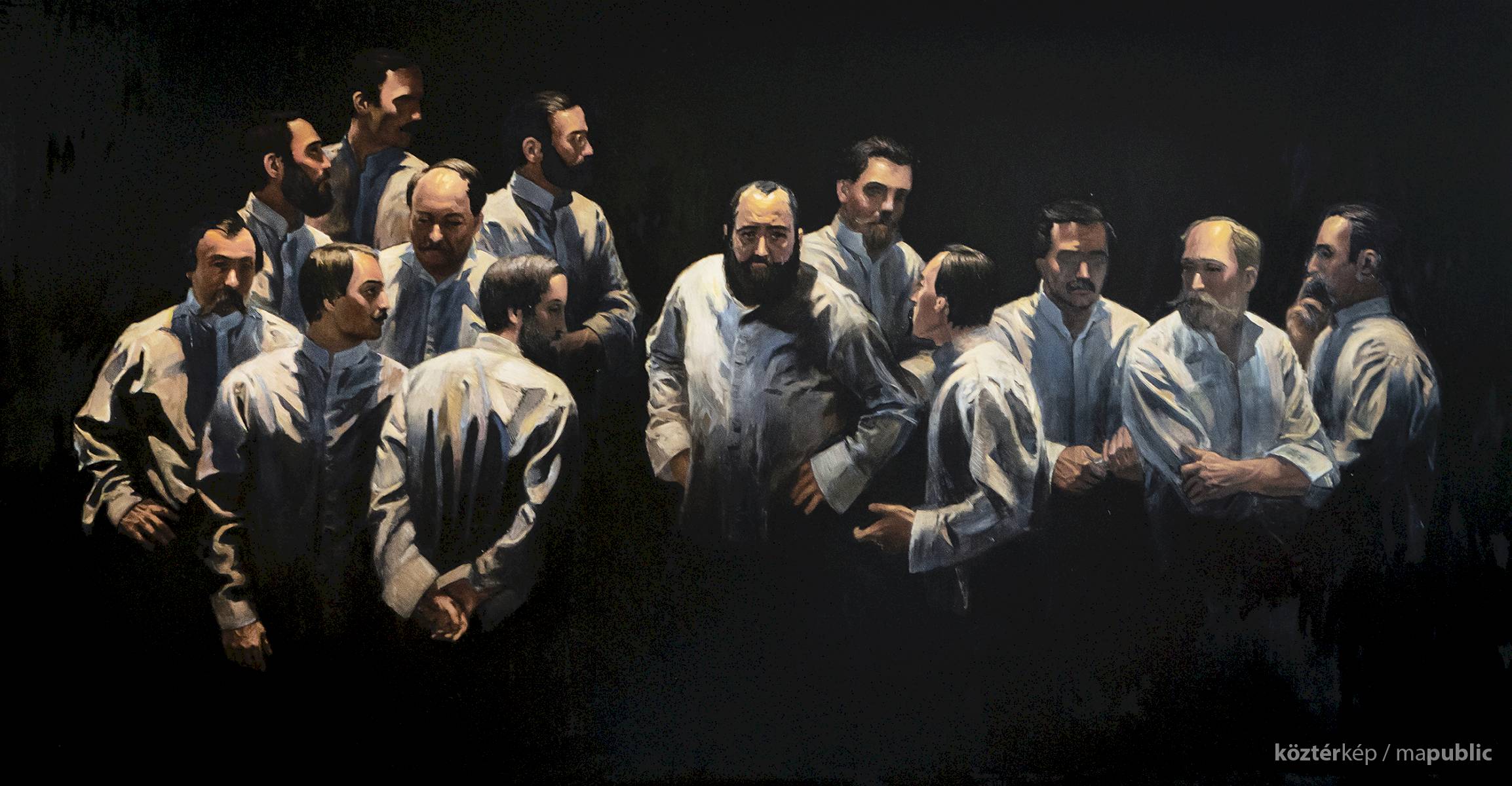 "A debreceni születésű, Barcsay Jenő-díjas (2001) Posta Máté 2004-ben készítette el „A 13 aradi vértanú” című, Kondor Béla-díjjal jutalmazott diplomamunkáját (2 méter magas, 4 méter széles olajfestmény). A művet a Debreceni Akadémiai Bizottságnak ajándékozta, s az 2010. október 6-ától az első emeleti körfolyosón látható. A kép a „magyar Golgota” tragikus pillanatában – mintegy az „utolsó vacsora” helyzetében – villantja fel a mártírok arcát, alakját, sorsát, s a helyzet kompozíciós feszültségét és katartikus jegyeit akkor is megérezni, ha nem tudjuk: éppen az aradi tizenháromról van szó."
