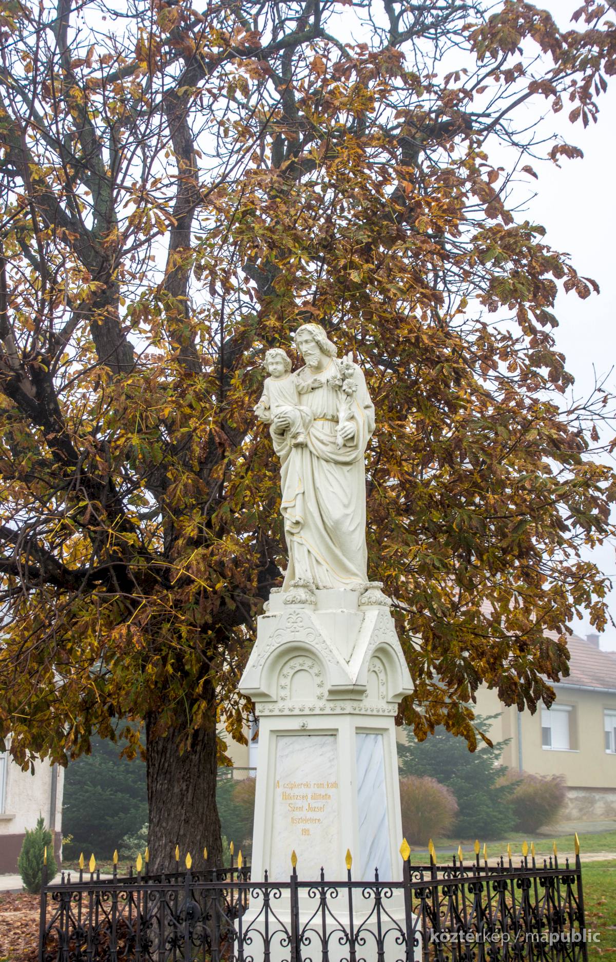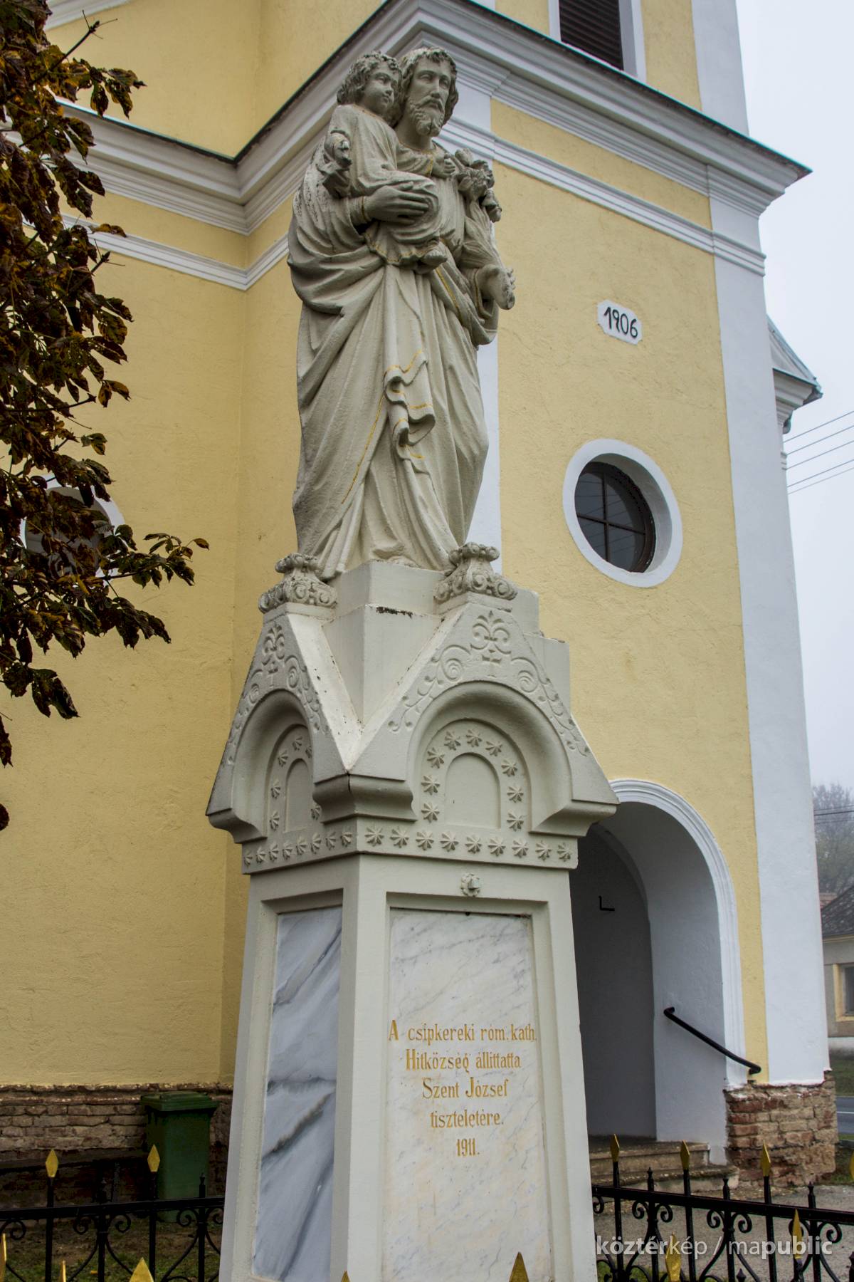„A csipkereki róm. kath. Hitközség állíttatta Szent József tiszteletére. 1911.”