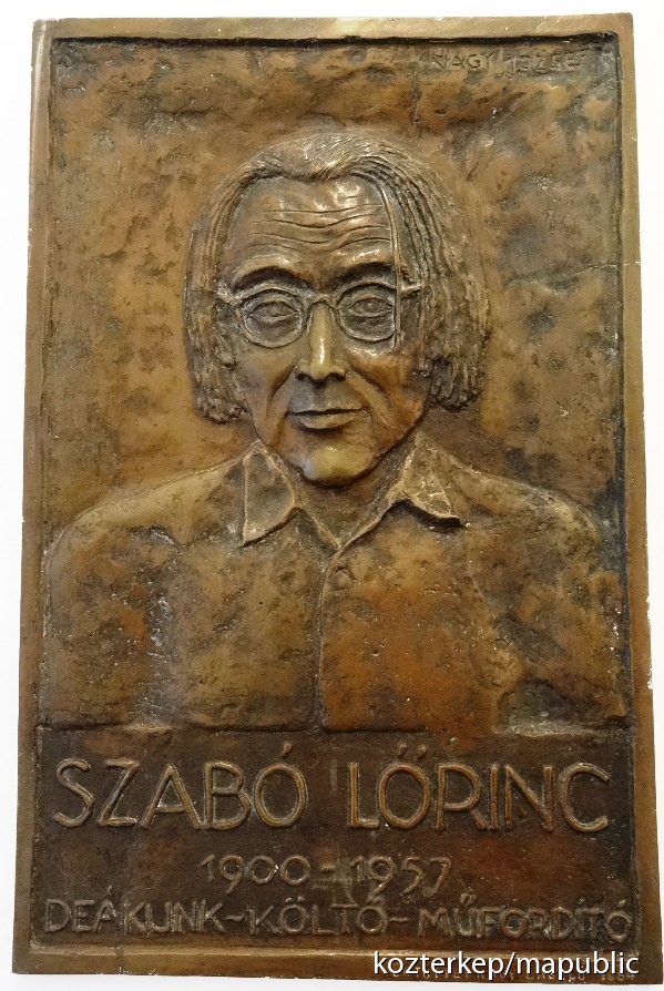 "Szabó Lőrinc bronzból öntött emléktábláját avatták fel Debrecenben, a református (kollégiumban, ahol a huszadik századi kiváló lírai költő és műfordító gimnáziumi tanulmányait folytatta. Szabó Lőrinc arcképét Nagy József szobrászművész készítette el. A domborművet Bartha Tibor, a tiszántúli református egyházkerület püspöke avatta fel az ősi református kollégium első emeletének folyosóján. "