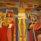 A magyar szenteket ábrázoló vallásos tárgyú falképe a kápolna oltár mögötti falát díszíti. Jézus központi alakja körül magyar szentek egy-egy csoportját látjuk. Közöttük felismerhető Szent Gellért, Szent Imre, Boldog Gizella, Szent István, Szent László, Szent Erzsébet, Szent Margit, Szent Piroska alakja.