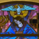A Bazilika homlokzatát díszítő festett üvegablak átmérője 450 cm.