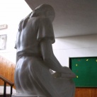A szobor anyagát nézve ugyan mészkő de gondos kezek fehér zománcfestékkel vonták be, a portás szerint így könnyebb letakarítani a ráfirkálásokat (most is van rajta 2 felirat).