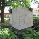 Széri-Varga Géza szobrászművész alkotása egy kb. 2 méter magas kőkocka, melyre egy bronzból készült lepel borul rá neves uralkodóink arcmásával.