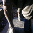 A síremléket díszítő egész alakos töviskoszorút viselő Jézus életnagyságú bronz lépő alakját Veres Kálmán szobrászművész készítette.
