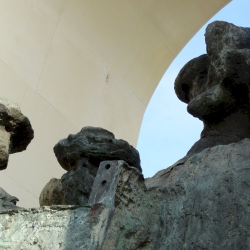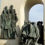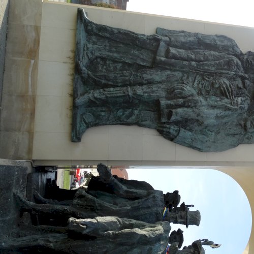 Az említett három vezetőt nem tudtam beazonosítani a szoboralakok közül. Talán Avraham Iancu a bal oldali öt fős csoport közepén áll.