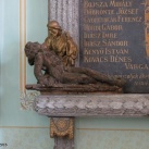 Az emlékmű párkányán egy sebesült katonát gyógyító Krisztus. Ez gipszből készült.