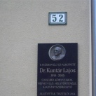 "E házban élt és alkotott Dr. Kuntár Lajos 1914 - 2005 újságíró, könyvtáros, népművelő, helytörténész, kiadványszerkesztő.