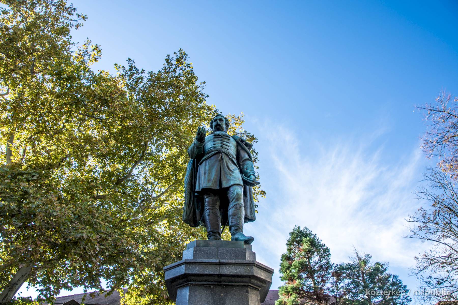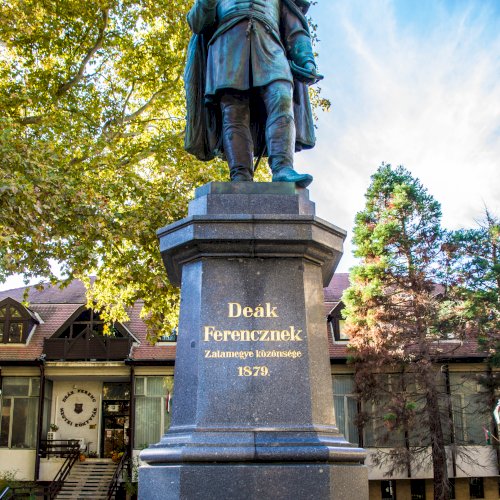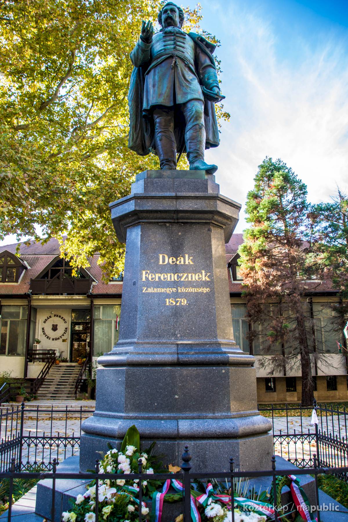 Magas, tagolt, gránitból készült talapzaton áll, a talapzat első, felső részén vésett felirat: Deák Ferencnek Zalamegye közönsége 1879. A szobrot a múlt században készített, később elpusztult, 1990-ben rekonstruált vaskerítés veszi körül.