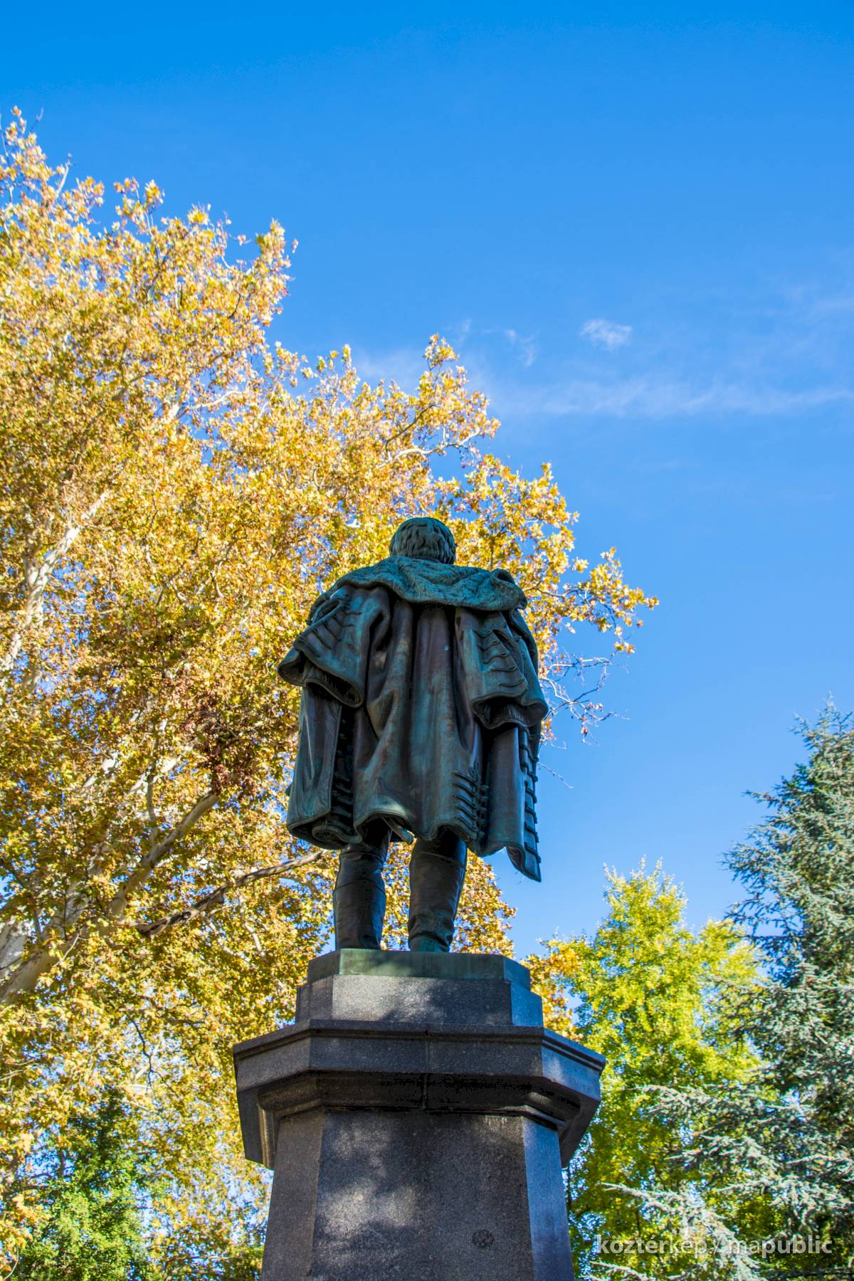 A szobor életnagyságnál nagyobb, bronzból készült, a nyugodtan szónokló Deákot ábrázolja zsinóros ruhában.