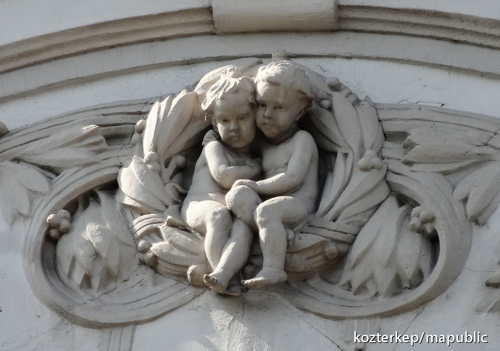 Én itt vitatkozom. Igaz, mint motívum, "az összebújó gyermekek" egyértelműnek látszik, de kicsiny eltérések láthatók a mozdulatban, de az arcok (frizura) megformálásánál mindenképpen. A kucorgó gyermekek motívuma a sarok mindkét oldali homlokzatán látható, alattuk az MCMV (1905)-ös évszám feltüntetésével.